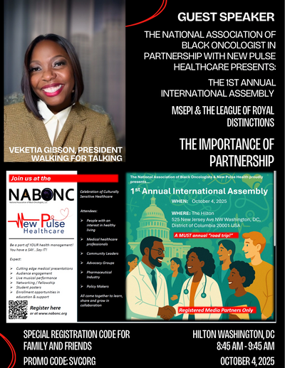 Veketia E. Gibson will be a featured speaker at the 1st Annual International Assembly hosted by the National Association of Black Oncologists (NABONC) in partnership with New Pulse Healthcare on October 4, 2025.